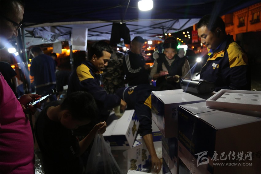 車行2小時,晚上8點,到了雅江縣河口鎮(zhèn)松茸市場。此時的雅江,茸香撲鼻,買松茸的、賣松茸的,人來人往,熱鬧非凡。
