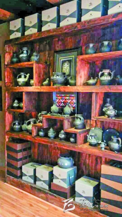 專(zhuān)賣(mài)店位于康定情歌廣場(chǎng)右側(cè)。店面古樸簡(jiǎn)潔,店鋪內(nèi),沒(méi)有華麗的裝飾,沒(méi)有鮮亮的色彩,一件件或黑色、或土黃色的土陶產(chǎn)品靜靜地?cái)[放在木質(zhì)陳列架上。產(chǎn)品有傳統(tǒng)的器形,如雙耳罐、香爐、茶壺等,又有新研發(fā)出的器形,如茶具、餐具、筆架等等。產(chǎn)品在將傳統(tǒng)工藝與現(xiàn)代工藝巧妙結(jié)合的基礎(chǔ)上,還融入了藏族傳統(tǒng)文化,民俗文化、宗教文化、吉祥文化等元素,以其拙樸典雅的造型向人們?cè)V說(shuō)著“阿西土陶”悠久的文化內(nèi)涵與歷史淵源。