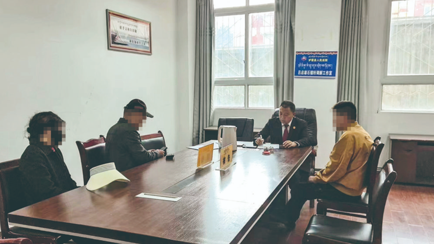 上午10點,在康定將軍橋,中央歌劇院的歌唱家們與當?shù)匚乃噽酆谜邍谝黄穑鎸γ嬲故靖叱潘?、手把手指?dǎo)聲樂技巧。