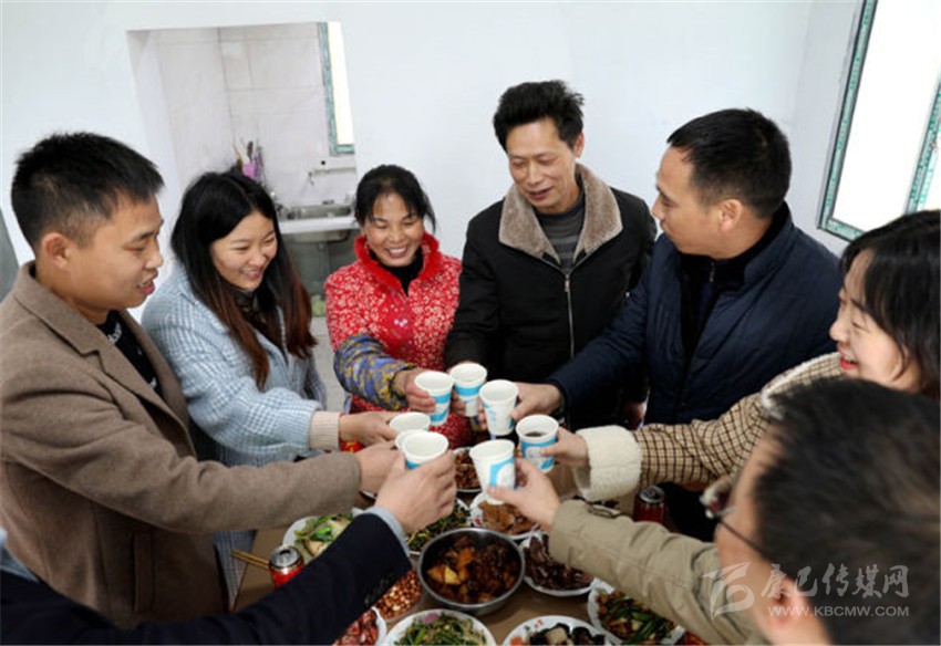 芬子和九兒請(qǐng)扶貧干部和鄉(xiāng)鄰們一起到新家慶祝。王曦 攝