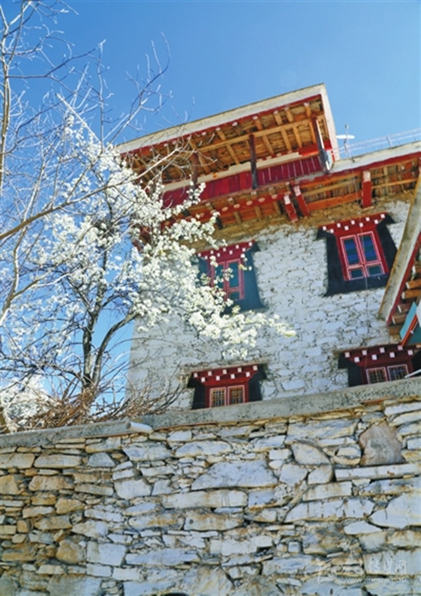 步入藏寨,藏式花紋的窗欞外懸掛著火紅的辣椒和金黃的玉米。朱紅色的大門上刻著藏式圖騰,客廳里色彩鮮艷、雕龍畫鳳的藏式餐桌上則擺滿了當(dāng)?shù)厥a(chǎn)的時(shí)令瓜果。室內(nèi)房間干凈整潔,有寬大的床鋪、客廳和洗手間,手捧香甜的酥油茶,倚窗而立,樹葉隨風(fēng)擺動(dòng),似乎在訴說(shuō)著少女心中對(duì)外面世界的向往。