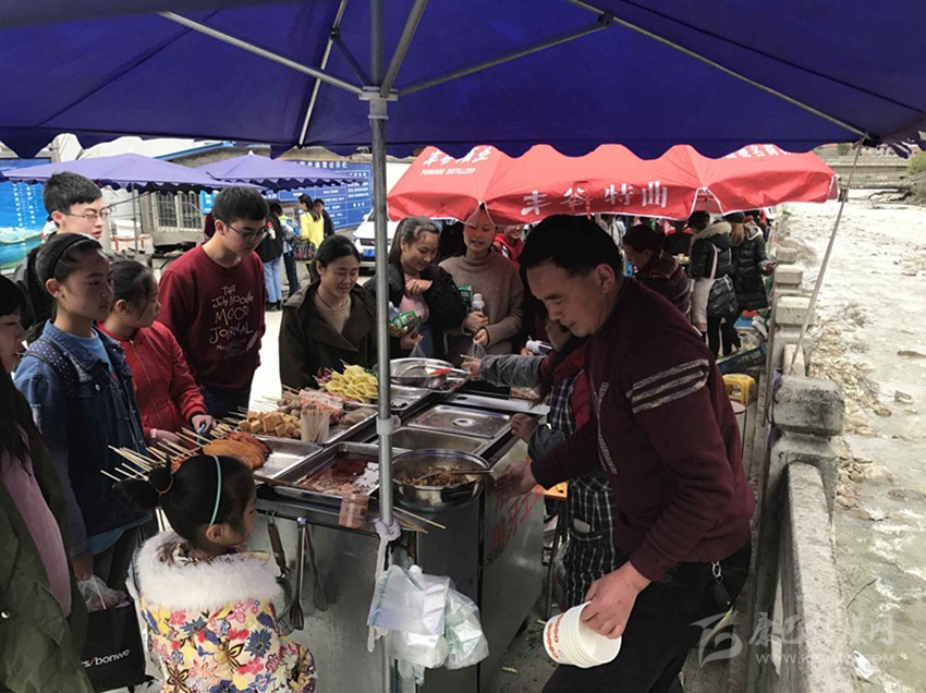 那么真實(shí)情況到底如何呢?7日,記者專門來到康定中學(xué)走訪調(diào)查。記者搭乘出租車前往學(xué)校,途中司機(jī)卻回應(yīng)“康中校門口那一段全是賣炸洋芋、炸雞腿的攤攤,車子根本開不過去,只能提前下車。”當(dāng)記者步行過橋到達(dá)校門口路段時(shí),雜亂無序而又異常喧鬧的場面立刻映入眼簾。約摸十來家燒烤油炸“流動攤點(diǎn)”上,商販們手中的烤具上下翻飛,幾十名身著“康定中學(xué)”校服的學(xué)生駐足其間,從校門出入的車輛不斷鳴笛避讓??久娼?、炸土豆、烤雞腿,濃濃的油煙、各種調(diào)料混合的氣味、滋滋的油炸聲……儼然一副“美食街”的火爆景象。