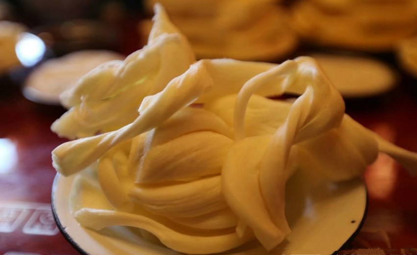 酥油古稱醍醐,元代才開始叫酥油。元代宮廷食醫(yī)思慧在《飲膳正要》中記述了酥油的提取方法:“取凈奶子,不住手用阿赤打,取浮油者為思馬哥油,今亦云曰酥油?!蔽闹小鞍⒊唷笔翘崛∷钟偷哪酒?。提取酥油有專門的酥油桶,桶里有一個連桿木柄,倒上牛奶,蓋上桶蓋后,連續(xù)上下抽動連桿木柄數(shù)百上千次,黃澄澄的酥油塊就全部浮在上面了。把酥油塊用手捏成坨,擠去水份,丟進清水里泡一會兒,就可以食用了?,F(xiàn)在牧區(qū)打酥油普遍用奶油分離器,既快又省。