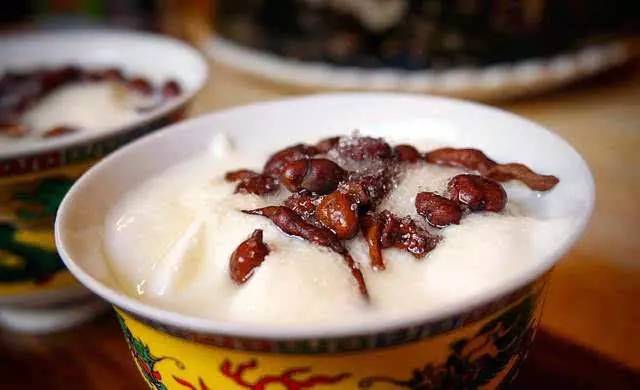 吃完酥油果子,再來一碗人參果藏式酸奶吧。酸奶是牦牛奶發(fā)酵而成,而人參果則是高原的寶貝之一,營養(yǎng)價值維生素含量極高。人生果是甜甜的,酸奶是極酸的。搭配在一起是清爽又可口的下午茶不二選擇。